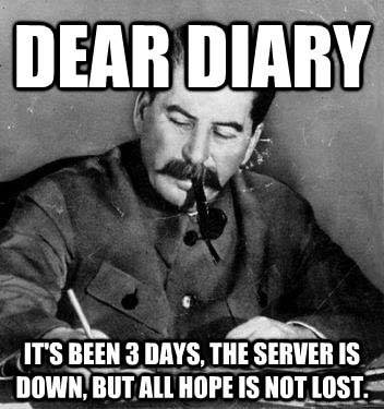 …it seems the server is up and running again but we’ll rely on YouTube videos for the next couple of days just in case…