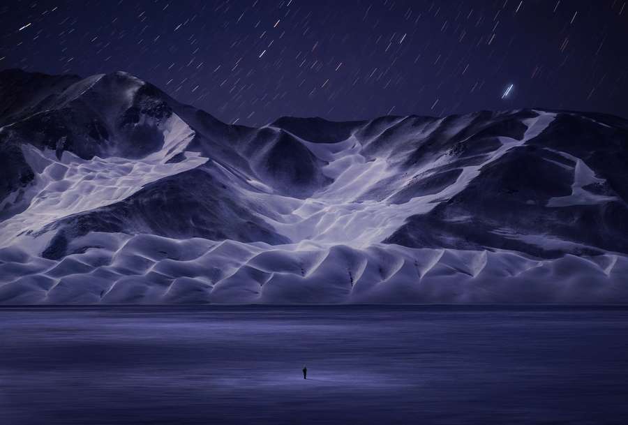 This is not a snow-capped mountain. Rather, the wind has whipped sand dunes in and around China’s Pamir Mountains, feats of nature that are constantly changing.”